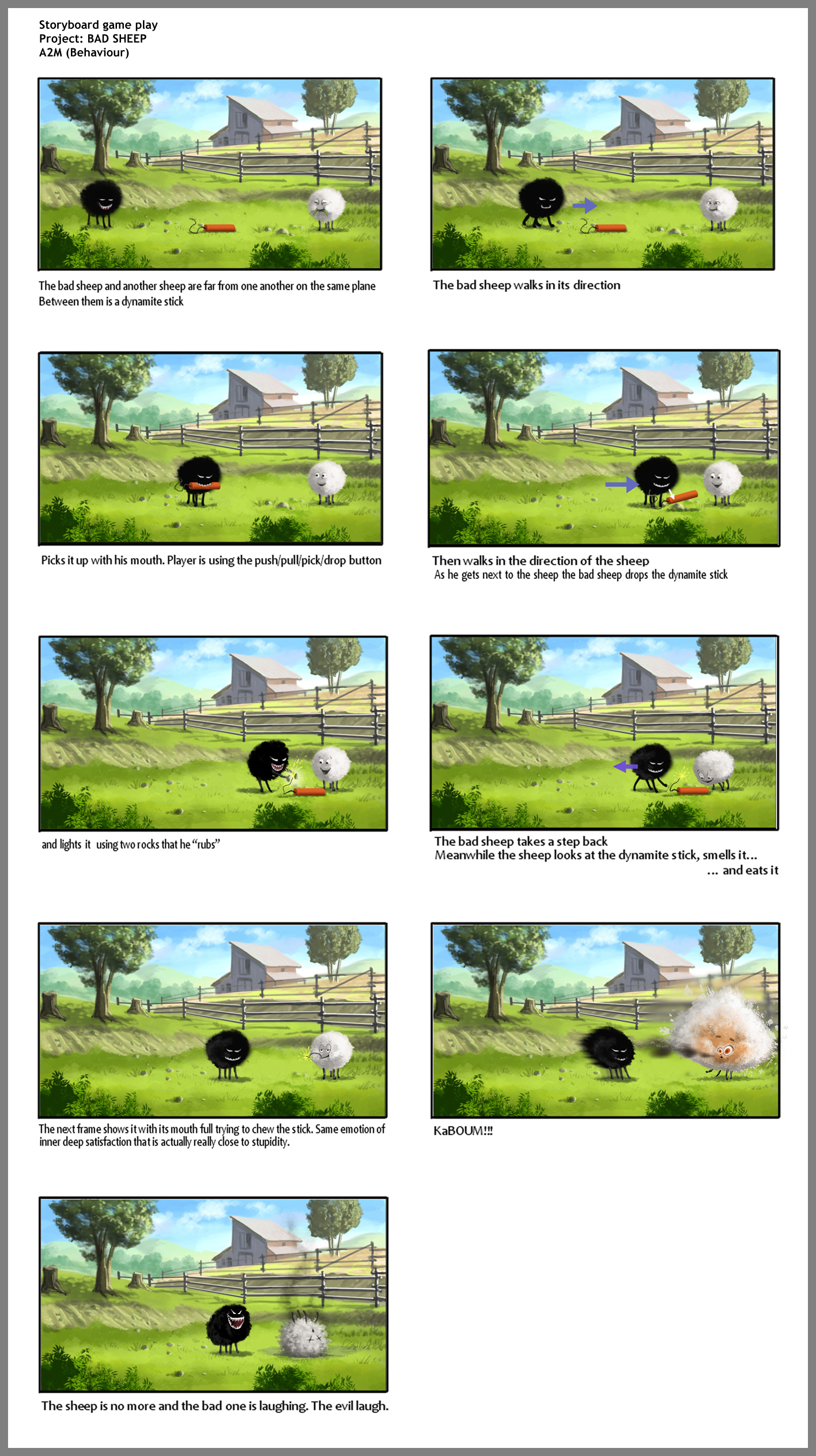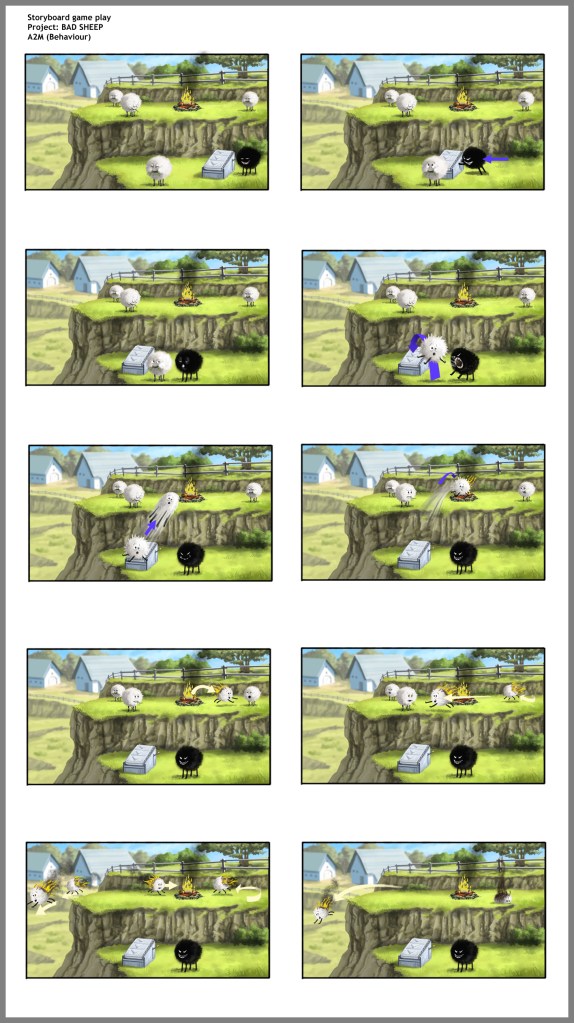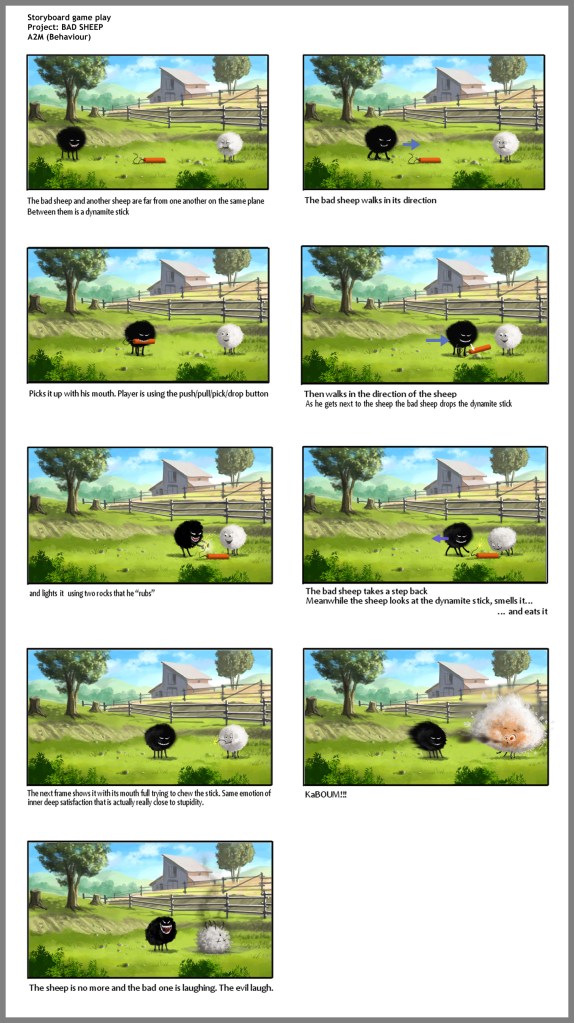 Storyboard Gameplay « Bad Sheep » Cliquez sur les vignettes pour accéder aux galeries / Clic on the thumbnails to go to the galleries